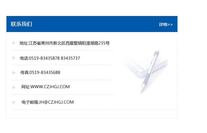 地址:常州市新北區友邦商務大廈1幢16、17層  電話:0519-85101652  傳真:0519-85112595  郵編:213022  網址:www.cz-jiayue_cn.xyjbb.com  郵箱:xiajifengaa@163.com